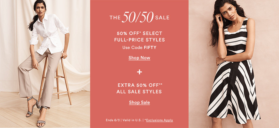 Ann Taylor – Take 50% off select full-price styles with code FIFTY and 50% off sale styles. Ends 6/3.